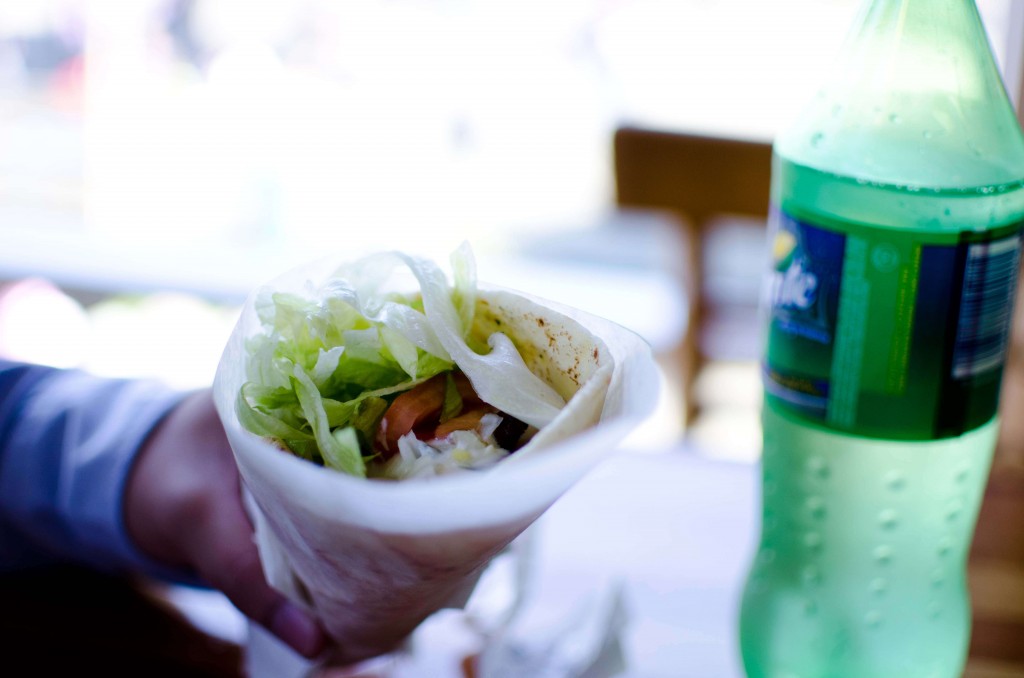 Afterwards, we filled our hungry tummies with treats from the Granville Market. I chose a lamb donair (shown below) and some blueberry bread (my fave!) from Terra Breads.