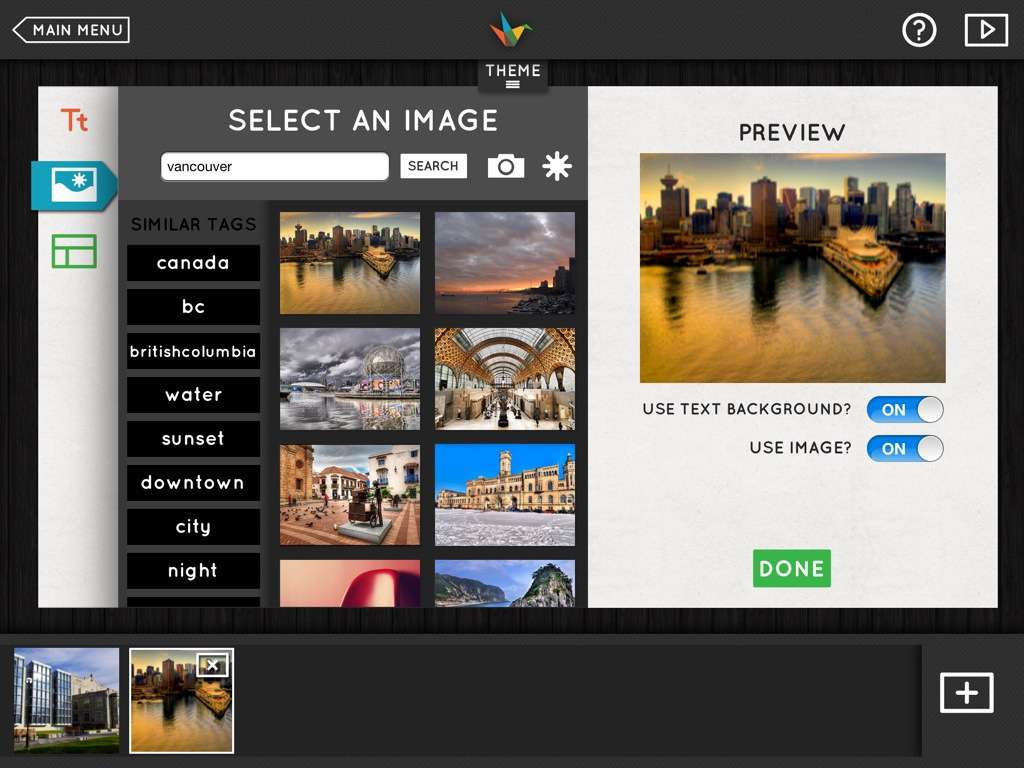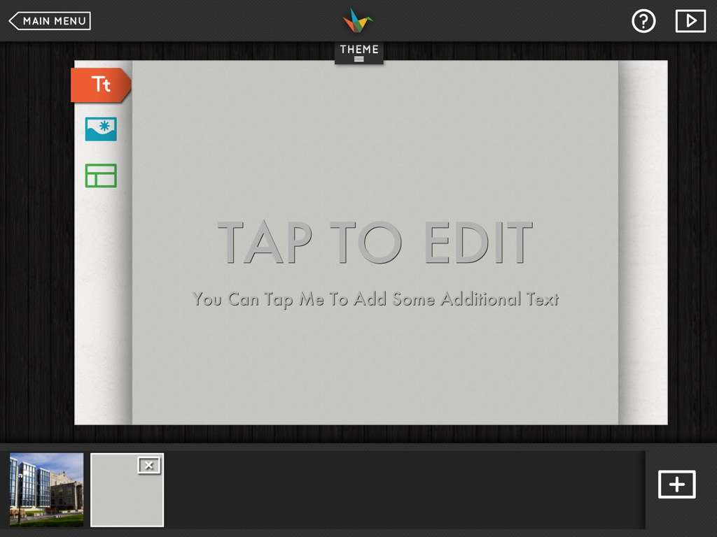 Public speaking is a fear that I, like many others, have yet to overcome. However, I do enjoy making presentations, from Powerpoints to Prezi’s. This week, the app I chose to share is called ‘Haiku Deck’. It’s a great tool for helping you make beautiful presentations. There are many things that I love about Haiku Deck. First of all, the templates they provide you are very modern and better yet, a lot of them are free! Another feature that I found unique was how they’ve incorporated a way to find images related to what you’re presenting. They’ll take the text that you’ve written on your slide and help you search for related images which you can use to enhance your presentation. Here are a few screenshots I took of a (pretend) presentation I was making:
