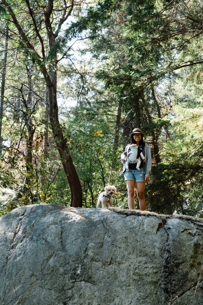 First Family Hike: About two months before Nayla was born, we ventured out to Lighthouse Park with Simcoe in this blog post. Nearly two months after Nayla was born, we ended up back at Lighthouse Park with Simcoe + her grandparents! It was our first time venturing the outdoors with her in a baby carrier and she did surprisingly well. Nayla was asleep for the entire walk and only briefly opened her eyes when we made it to the view point. I will definitely be passing the torch to Romel to wear the carrier for our next hike!