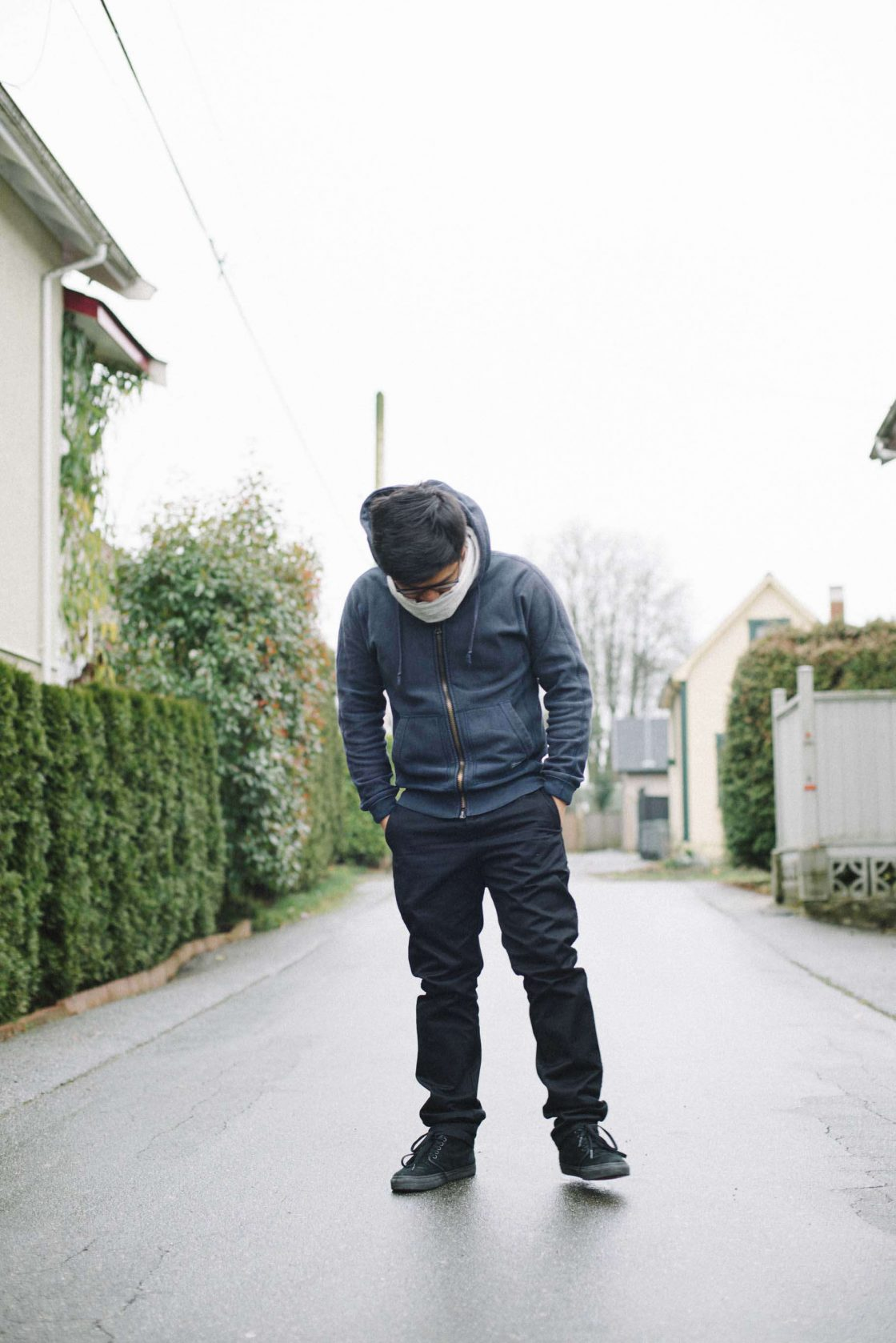 What I’m wearing.. Hoodie Reigning Champ, Scarf Wings+Horns, Shirt H&M, Westpoint Tapered Chinos Wings+Horns, Chukkas Vans