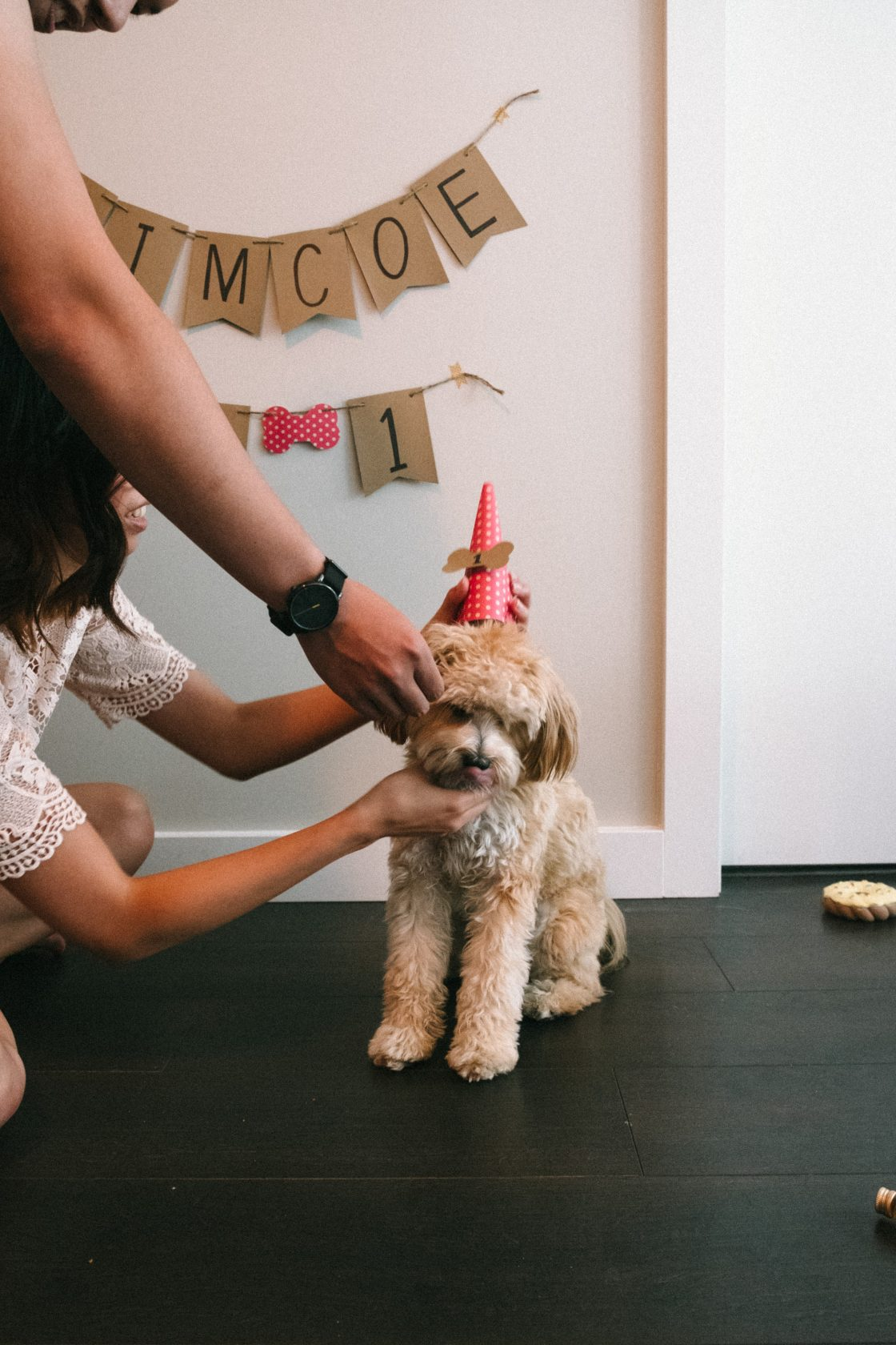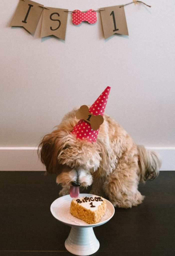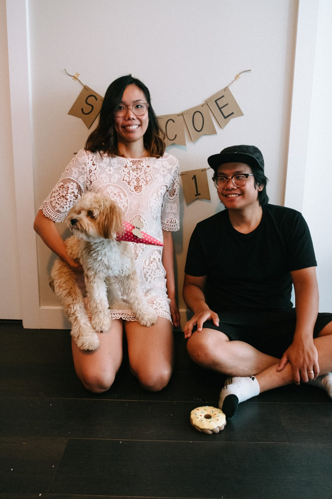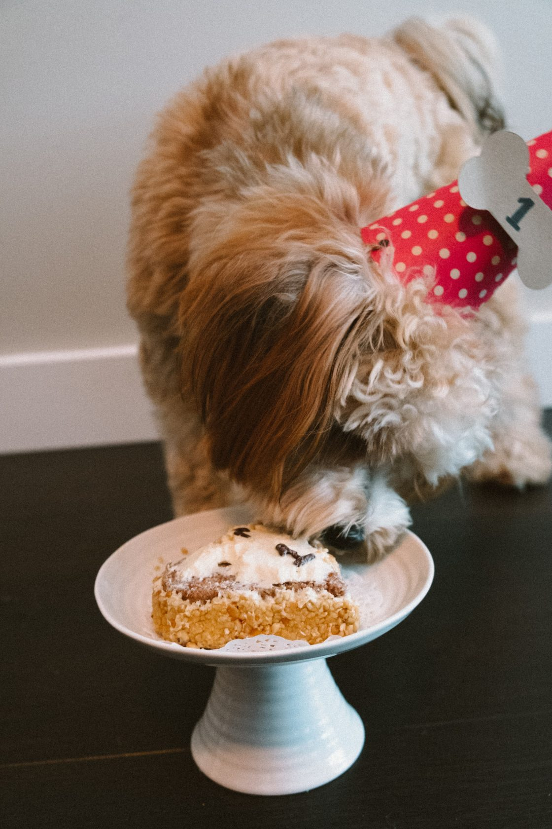 Last weekend, this not-so-little pup turned one! We threw him a last-minute lunch with our family, which included some sushi take-out and of course, a dog-friendly peanut butter birthday cake from Three Dogs Bakery.